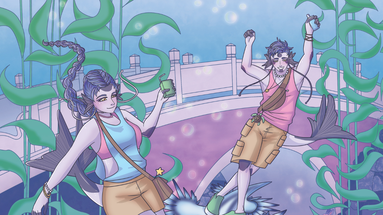 Malia uses digital media to draw whimsical illustrations showcasing their fondness of the sea, skies, and animals, with a style inspired by both western and Japanese animation.